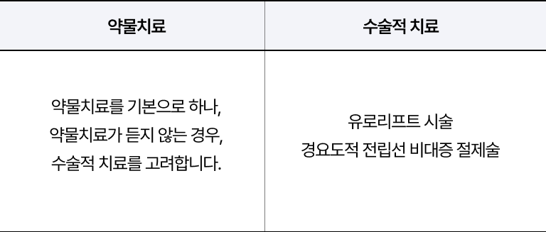 통증이나 배뇨장애 등의 증상이 발생합니다.